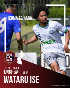 この度、アトレチコ鈴鹿クラブより伊勢渉 選手が加入することとなりましたのでお知らせいたします。