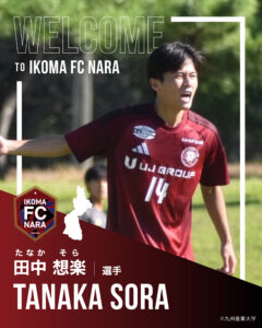 この度、九州産業大学より田中 想楽 選手が加入することとなりましたのでお知らせいたします。